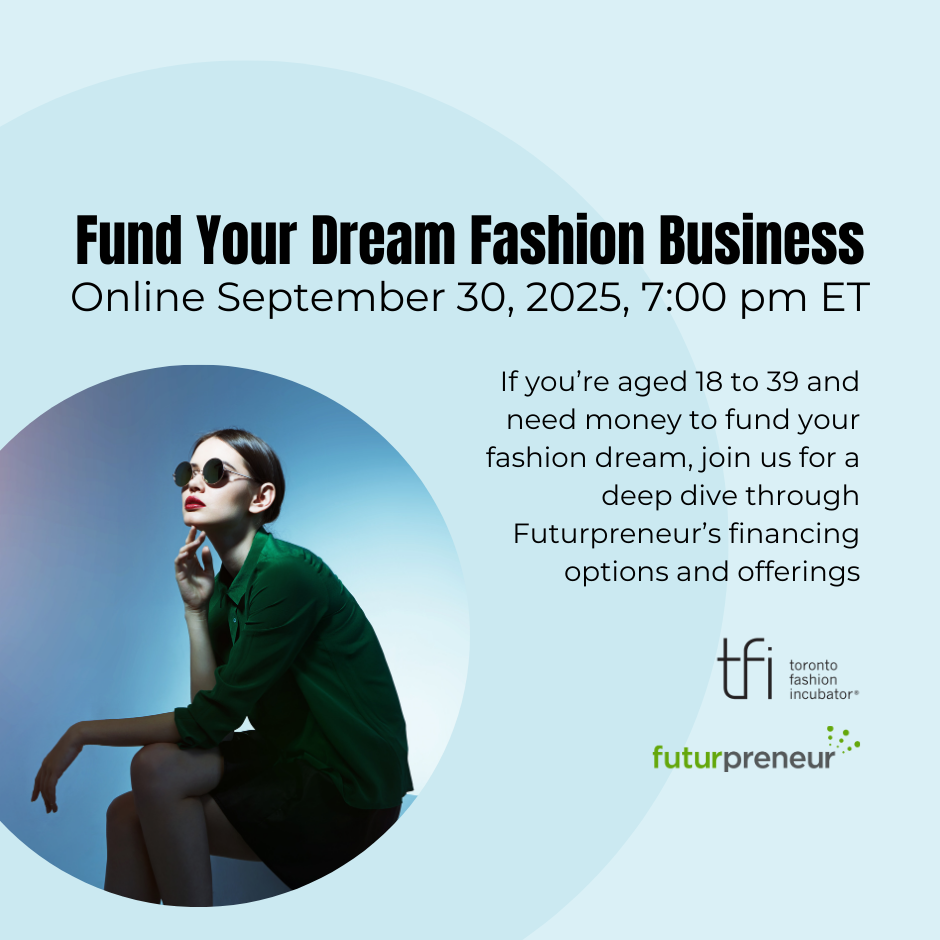If you’re aged 18 to 39 and need money to fund your fashion dream, join us online on September 30th at 7:00 pm ET for a deep dive through Futurpreneur’s financing options and offerings.